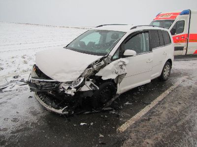 Er hatte noch versucht auszuweichen, jedoch auf Grund der Straßenverhältnisse war dies nicht mehr möglich und er wurde durch die Wucht des Aufpralls in den Straßengraben geschleudert. Bei dem Unfall wurde die Frau lebensgefährlich verletzt und in ein Krankenhaus nach Kassel gebracht. Der 65-jährige Mann konnte nach einer ambulanten Versorgung wieder nach Hause entlassen werden. Nach Angaben der Polizei entstand ein Sachschaden in Höhe von rund 23.000.- Euro. Die L3215 war für rund eine Stunde voll gesperrt. Zur Zeit des Unfalls war die Strasse verschneit und glatt. Beide Fahrzeug hatten Winterbereifung.