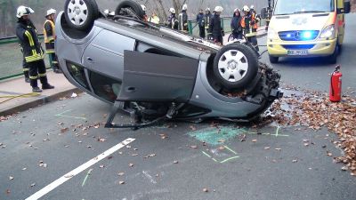 Der 70 jährige Fahrer geriet auf den rechten Randstein und verlor dadurch die Kontrolle des Fahrzeugs, prallte gegen die Felswand und kippte durch den wuchtigen Aufprall auf das Autodach. Hierbei wurde die 65 jährige Beifahrerin eingeklemmt und schwerverletzt. Die Feuerwehr musste die Beifahrertür öffnen um die schwerverletzte Frau schonend wie möglich zu befreien. Der Fahrzeugführer wurde leicht verletzt. Beide wurden in ein Bad Wildunger Krankenhaus gebracht. Zum Einsatz kamen die Feuerwehren Sachsenhausen, Niederwerbe und Waldeck. Der Schaden beläuft sich auf 6000 Euro. Die L3086 wurde für den Einsatz voll gesperrt.