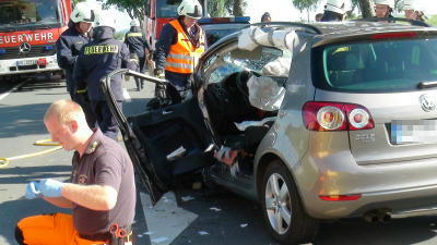 Die 71- jährige Korbacherin konnte sich selbst aus dem Fahrzeug befreien und wurde glücklicherweise nur leicht verletzt. Sie wurde jedoch mit einem Schock in ein Korbacher Krankenhaus eingeliefert. Ihr 71- jähriger Mann wurde im Fußraum eingeklemmt und schwer verletzt. Die Feuerwehr musste den Mann mit hydraulischem Gerät aus dem Fahrzeug befreien. Anschließend musste er mit dem Rettungshubschrauber Christop 7 in ein Kasseler Krankenhaus geflogen werden. Zum Einsatz kam die Feuerwehr Sachsenhausen mit insgesamt 20 Einsatzkräften. hn/we