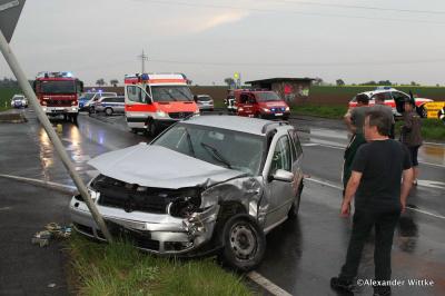 Zu dem Unfall kam es, als gegen 18 Uhr eine 69 Jahre alte Frau aus Homberg, von Mardorf aus nach links auf die Kreisstraße in Richtung der Kreisstadt abbiegen wollte. Beim Abbiegen übersah sie vermutlich einen 23 Jahre alten Audifahrer aus Edermünde-Haldorf, der von Homberg kommend in Richtung der B 254 unterwegs war. Durch den Zusammenprall wurde die komplette Front des Audis zerstört. Die Ölwanne des Wagens platzte, der manövrierunfähige Wagen überfuhr die Gegenfahrbahn und kam auf einem Feld zum Stillstand. Das Auto der 69-Jährigen wurde um die eigene Achse geschleudert und kam entgegen der Fahrtrichtung an einem Verkehrsschild zum Stillstand. Die beiden Rettungsteams versorgten die Verletzten, während die Feuerwehrleute aus Homberg sich um die Beseitigung der Trümmer und des Öls kümmerten. Während der Rettungsarbeiten war die Kreisstraße für den Verkehr voll gesperrt. Die Feuerwehr der Kreisstadt war mit den Einsatzabteilungen Homberg und Mardorf vor Ort. Zwei Streifen der Polizeistation Homberg nahmen den Unfall auf. Der Sachschaden beträgt rund 15.000 Euro.