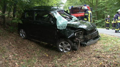 nach rechts von der Fahrbahn ab, krachte gegen einen Wasserdurchlauf, überschlug sich mehrfach und blieb dann auf der Seite liegen. Die Frau wurde nach einer ärztlichen Erstversorgung mit dem Rettungshubschrauber Christoph 7 in ein Krankenhaus geflogen. Die Kreisstrasse war für die Dauer der Rettungsarbeiten komplett gesperrt. Über die Schadenshöhe konnte die Polizei derzeit noch keine Angaben machen.