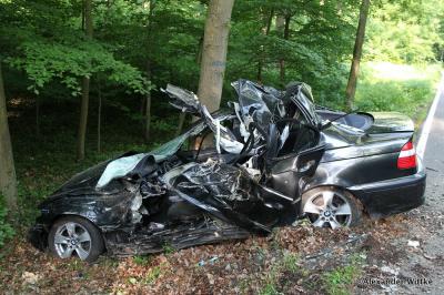 Zwei weitere Insassen ein 23-und ein 29 jähriger Mann aus Homberg/Efze und Steindorf konnte das Fahrzeug aus eigener Kraft verlassen. Einer der beiden brach jedoch schwer verletzt zusammen. Eine zufällig vorbeikommende Frau entdeckte den Unfall gegen 05:35 Uhr und verständigte die Rettungskräfte. Der zweite Mann verlies schwer verletzt die Unfallstelle, wurde von einer Zeugin angetroffen, die ihn dann nach Hause fuhr. Wie es zu diesem Unfall kommen konnte, steht derzeit noch nicht fest. Ein Gutachter wurde zur Unfalluntersuchung herangezogen.
