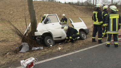 Aus bisher noch nicht geklärter Ursache kam der VW Bus plötzlich nach Recht von der Strasse ab, der Fahrer verlor die Kontrolle über sein Fahrzeug und krachte frontal vor einen Baum. Mehrere Ersthelfer waren vor Ort und versuchten die Verletzten zu befreien. Beim Eintreffen der Feuerwehr war die erste Aufgabe den Weg für die Notärzte und Rettungskräfte frei zu machen. Mit hydraulischem Gerät musste das Dach des Busses entfernt werden. Alle Insassen des Fahrzeuges wurden schwer verletzt und nach ärztlicher Erstversorgung in die Krankenhäuser nach Kassel, Göttingen und Fritzlar gebracht. Zum Einsatz kamen insgesamt sechs Rettungswagen, die Rettungshubschrauber Christoph 7 und 44 sowie 22 Einsatzkräfte der Feuerwehren aus Bad Emstal und Umgebung. Auf Anordnung der Staatsanwaltschaft Kassel wurde zur genauen Bestimmung der Unfallursache ein Gutachter hinzugezogen. Am Fahrzeug entstand Totalschaden.