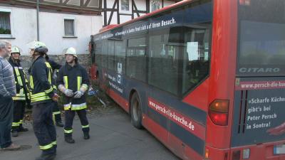 Ihr kam es zunächst so vor als hätte der Busfahrer Gas mit Bremse verwechselt, war jedoch eher davon überzeugt, dass es sich um einen technischen Defekt handeln musste, da Sie in dem Busfahrer einen eher erfahrenen Mann erkannte. Der 62-jährige Busfahrer gab bei der Polizei an, dass das Fahrzeug plötzlich selbständig Gas gab und er es nicht mehr hätte stoppen können. Der Bus fuhr ungebremst über die Kreuzung, durchfuhr einen Vorgarten und krachte frontal an die Wand von zwei nebeneinander stehenden Häusern. Drei Jugendliche erlitten bei dem Aufprall schwere Verletzungen und wurden in ein Krankenhaus eingeliefert. Fünf weitere Personen, sowie der Busfahrer wurden nur leicht verletzt. Da nicht eindeutig geklärt war wie es zu dem schweren Unglück kam, wurden Sachverständige eingeschaltet, die damit beauftragt waren den Hergang zu rekonstruieren. Bevor der Bus von der Wand gezogen werden konnte, war das THW beauftragt die Statik des Hauses zu prüfen, ob eventuell Einsturzgefahr bestehen könnte. Da hier jedoch keine Bedenken geäußert wurden, konnte ein Abschleppunternehmen den Bus mit Stahlseilen aus der misslichen Lage befreien. Wie hoch der Sachschaden an Bus und Häusern sein wird, konnte die Polizei noch keine Angaben machen. Die Ortsdurchfahrt war für die Dauer des Einsatzes komplett gesperrt.