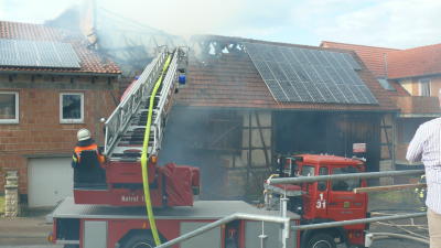 Als die Feuerwehr aus den Stadtteilen Wolfhagen und Wenigenhasungen an der Einsatzstelle eintraf, schlugen die Flammen bereits aus dem Dachstuhl. Da die Scheune zwischen zwei Wohngebäuden stand, galt es zunächst die Bewohner in Sicherheit zu bringen. Glücklicher Weise stand bald fest, dass keine Menschen in Gefahr waren und auch niemand verletzt wurde. Wie es zu dem Brand kommen konnte ist derzeit noch unklar. Die Experten der Kripo Kassel haben die Ermittlungen zur Brandursache aufgenommen. Insgesamt waren 63 Einsatzkräfte vor Ort. Die genaue Schadenshöhe ist derzeit noch nicht bekannt