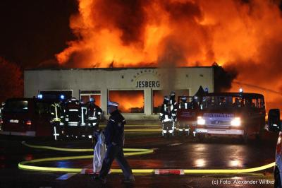 Gegen 3.30 Uhr wurde das Feuer gemeldet, welches von einer Polizeistreife entdeckt wurde. Die Feuerwehr versuchte ein Durchzünden zu verhindern, jedoch gegen 4.00 Uhr stand die rund 50 Meter lange Lagerhalle komplett in Flammen. Mehr als 100 Einsatzkräfte der Feuerwehr sind nötig um den Brand unter Kontrolle zu bringen. Wie es zu dem Brand kommen konnte muss nun die Kripo klären, die noch in der Nacht die Ermittlungen aufgenommen hatte.