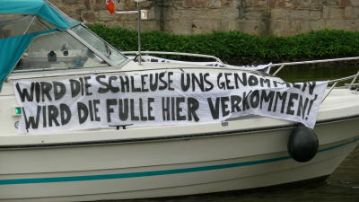Eine Restaurierung soll Millionen kosten, dafür ist angeblich kein Geld vorhanden. Unmut macht sich in den Vereinen an der Fulda breit, nachvollziehen könnte man eine solche Entscheidung nicht. Wenn die Schleuse tatsächlich geschlossen werden sollte können keine Baggerschiffe mehr die Fulda befahren, sie würde langsam versanden, das Aus für den Regattasport. Ein Desaster auch für die Personenschifffahrt, die Ausflugsdampfer könnten Ihre Fahrten nicht mehr fortsetzen und müssten Ihren Betrieb einstellen. 10000 Postkarten mit dem Aufdruck „Die Fulda ist unser Leben„ hat der Kasseler Nautic Club drucken lassen um auf den Umstand aufmerksam zu machen. Die Karten müssen ausgefüllt und entweder per Post an Bundesverkehrsminister Peter Ramsauer geschickt, oder im Nautic Club abgeben werden.
