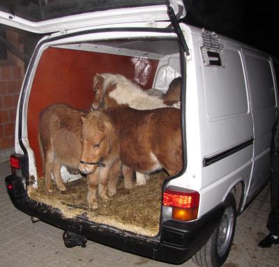 Unter ungeeigneten Transportbedingungen, waren vier Mini-Shetland-Ponys wohl auf dem Weg von den Niederlanden nach Rumänien, ohne Futter und Wasser. Die Polizei konnte ein weiterer Transporter mit rumänischem Kennzeichen anhalten. Ein VW Sharan mit einem Tiertransportanhänger konnten die Beamten auf der Ladefläche sechs weitere Ponys feststellen. Für alle Tiere gab es Pferdepässe, aber es lagen keine Gesundheitsbescheinigungen des Veterinäramtes vor. Sie haben die Tiere angeblich von einem Pferdehändler in den Niederlanden gekauft und waren auf dem Weg nach Rumänien. Die Weiterfahrt wurde untersagt. Die Tiere, die sich wohl aufgrund der Enge in den Transportmitteln gegenseitig verletzt hatten, wurden auf einem Pferdegestüt in der Nähe untergebracht und artgerecht versorgt. Das Veterinäramt wurde informiert.