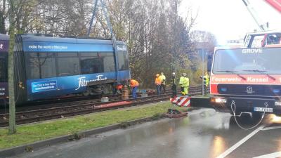 Wie die Beamten des Baunataler Reviers an der Unfallstelle feststellten, kam es durch einen runden Kanaldeckel zum Unfall, den jemand vorher vermutlich hochkant in die Kanalöffnung aufgestellt hatte. Dieser Kanaldeckel, der wie ein Gully-Deckel aussieht, war zwischen den beiden Schienensträngen eingelassen. Beim Überfahren dieses aufgestellten Kanaldeckels wurden die am Ende der Bahn am Unterboden befindlichen Elektromotoren und das Getriebe so stark beschädigt, dass eine Weiterfahrt nicht mehr möglich war. Die Fahrgäste mussten aussteigen und wurden in Ersatzbussen der KVG weiter transportiert. Auf der Strecke hat die KVG einen Busersatzverkehr eingerichtet. Die Kasseler Berufsfeuerwehr war damit beschäftigt, die Straßenbahn mit einem Kran soweit anzuheben, dass die Motoren bzw. das Getriebe abmontiert werden können. Erst danach kann die Straßenbahn, die beim Unfall erheblich beschädigt aber nicht entgleist war, über die Gleisanlage abgeschleppt werden. Beim Überfahren des Kanaldeckels ist ein Fahrgast von seinem Sitzplatz hochgehoben worden. Er klagte anschließend über Rückenschmerzen. Ein weiterer Fahrgast hatte sich den Kopf an einer Halterung gestoßen. Beide lehnten eine medizinische Versorgung ihrer leichten Verletzungen in einem Rettungswagen ab. Durch den Aufprall auf den Kanaldeckel ist zudem eine Seitenscheibe der Tram zu Bruch gegangen und der Boden im hinteren Abteil hatte sich gehoben. Der genaue Sachschaden kann noch nicht beziffert werden. Ersten vorsichtigen Schätzungen zu Folge dürfte er sich mindestens im fünfstelligen Bereich befinden. Die Baunataler Beamten haben die Ermittlungen wegen des Verdachts des gefährlichen Eingriffs in den Bahnverkehr eingeleitet. Zeugen, die am Freitagmorgen verdächtige Personen an der Gleisanlage der Altenbaunaer Straße im Bereich der Haltestelle Waldmannstraße gesehen haben, werden gebeten, sich unter 0561-9100 beim Polizeipräsidium Nordhessen zu melden.