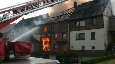 Rund 140 Einsatzkräfte waren vor Ort um das Feuer unter Kontrolle zu bringen. Zunächst stand nur die Scheune und ein nachträglich eingebauter Wohnbereich in Flammen. Trotz aller Bemühungen breitete sich das Feuer auch auf das Nachbarhaus aus, in dem der komplette Dachstuhl ausbrannte. Wolfgang Kesper ein unmittelbarer Nachbar versorgte die Einsatzkräfte mit Getränken. Er hatte zuvor einen lauten Knall gehört, dann ging alles ganz schnell sagte er zu Hessennews.Von Seiten des Bürgermeisters wurde die durch den Brand obdachlos gewordene Familie jede Hilfe zugesichert. Eine Unterkunft sei bereits gefunden und ein Spendenkonto wurde eingerichtet. Auch im Ort steht die fünfköpfige Familie nicht alleine. Viele Menschen boten ihre Hilfe an, mit allem was man nach einer solchen Katastrophe benötigt.Für die Feuerwehren besteht bei Gewitter immer ein gewisses Risiko, dennoch können die Löschmaßnahmen nicht eingestellt werden. Noch am Abend und am darauf folgenden Tag nehmen die Brandursachenermittler ihre Arbeit auf. Schnell wird klar, hier liegt kein Fremdverschulden vor, ein Blitz hatte den Brand ausgelöst. Nach Angaben der Polizei wird der Sachschaden auf über 300.000 Euro geschätzt