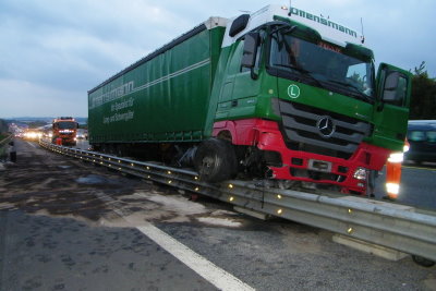 Kassel – Bei einem Unfall mit einem LKW kam es am frühen Dienstagmorgen auf der A7 zwischen den Anschlusstellen Kassel-Mitte und Kassel-Ost zu erhebliche Verkehrsbehinderungen. Gegen 04.30 Uhr kam ein Sattelzug im Baustellenbereich nach rechts ab und beschädigte 250 Meter Leitplanke. Bei dem Unfall riss sich der LKW sich den Tank auf und rund 400 Liter Diesel liefen aus.