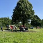 Die Feuerwehr Taunusstein ist mit den Wehren aus allen Ortsteilen im Einsatz, weil sich das Ablöschen der teilweise mit Stroh gefüllten Scheune und Stallung als sehr schwierig erweist und ein Übergreifen der Flammen auf das Wohnhaus verhindert werden soll. Nach derzeitigen Stand werden die Nachlöscharbeiten bis Montag andauern. Neben den rund 100 Strohballen verbrannten in der ca. 50×17 m großen Halle auch mehrere Traktoren und landwirtschaftliche Geräte. Der Sachschaden wird auf 750.000 Euro geschätzt. Die Brandursache ist derzeit noch nicht bekannt. Die Polizei wird am Montag ihre Ermittlungen aufnehmen.
