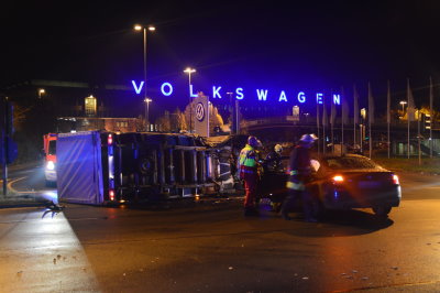 Nachdem der Kleintransporter losgefahren war stießen Sie im Einmündungsbereich zusammen. Durch die Wucht des Aufpralls, wurde der Kleintransporter auf die Seite gekippt. Wer von den beiden Fahrzeugführern bei Rot die Ampel passiert hatte, konnte bislang noch nicht abschließend geklärt werden. Der Fahrer wurde in seinem Transporter nicht eingeklemmt, musste aber von der Feuerwehr aus dem Fahrzeug befreit werden. Der PKW-Fahrer sowie der Fahrer vom Transporter wurden ins Krankenhaus eingeliefert. Die Freiwillige Feuerwehr Baunatal sicherte die Unfallstelle ab und nahm auslaufende Betriebsstoffe auf. Neben der Feuerwehr Baunatal war auch die Werkfeuerwehr VW im Einsatz. Der Verkehr in Richtung Oberzwehren konnte an die Unfallstelle vorbei geleitet werden. Der Sachschaden wird auf 40.000 Euro geschätzt.
