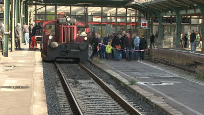 Im Bahnhofsgebäude selbst sorgte die Bergbahnkönigin Sylvia aus Thüringen und der Schweizer Schlagersänger Leonard für eine ausgelassene Stimmung. Für die technisch Begeisterten gab es im hinteren Bereich der Halle die Möglichkeit in einem Simulator mit einem Linienbus, oder einer Straßenbahn zu fahren. Ein ganz besonderes Highlight stellte ganz sicher eine in die Jahre gekommene Rangierlok dar, denn nicht nur zum Ansehen, sondern auch zum Mitfahren bereit stand. Wer wollte und genügend Wartezeit mitbrachte kam anschließend in den Genuss mit der Lok einmal auf Rangierfahrt zu gehen. Für manch einen Fan ein einmaliges Erlebnis. Gerd Tucholka DB-Bahnhofsmanager und Veranstalter des Familienfestes sieht in dieser Aktion die Möglichkeit die Bahn einmal aus einem anderen Blickwinkel zu sehen. Auch wenn sich im Laufe der Jahre viel bei der Bahn verändert hat, gehören die alten Wagons noch genauso zum Bild des Bahnhofes, wie die Tauben auf den Bahnsteigen.