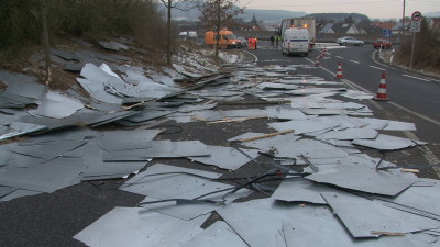 LKW verliert 16 Tonnen Stahl-Blech
