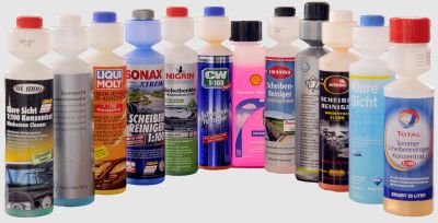 Die GTÜ Gesellschaft für Technische Überwachung hat zwölf gängige Sommerscheibenreiniger getestet. Ein 1:10-Produkt sowie elf 1:100-Konzentrate. Letztere sind besonders bequem per Dosierkopf anzumischen. 25 Milliliter Reinigungskonzentrat in 2,5 Liter Wasser gekippt, und schon ist die gebrauchsfertige Mixtur angerichtet.