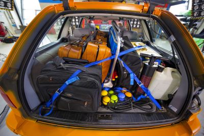 Koffer, Klappstühle und Kühlboxen müssen mit in den Sommerurlaub, werden aber im Auto häufig falsch verladen. Sie werden damit zur tödlichen Gefahr, wie der ADAC in einem aktuellen Crashtest zeigt. Die Unterschiede zwischen schlechter Sicherung und gut verstautem Sommergepäck erweisen sich im ADAC Crashtest als groß: Während die korrekt geladene und mit wenigen Handgriffen befestigte Ladung beim Frontal-Crash (50 km/h) nur zu leichten Schäden führt, ist der Innenraum bei schlecht gesichertem Gepäck völlig demoliert, die Insassen sind mindestens schwer verletzt.