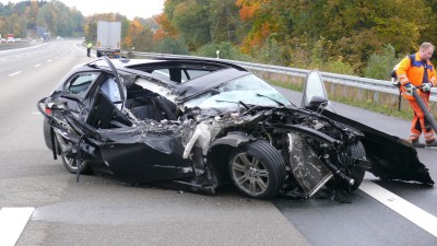 Kurz nach der Abfahrt Kassel Wilhelmshöhe wechselte der Mann plötzlich auf die mittlere Fahrspur und krachte in die Rückseite eines Sattelzuges. Hier wurde er zurückgeschleudert, krachte gegen die Leitblanke und anschließend wieder gegen den LKW. Das an der Unfallstelle eingesetzte Notarztteam fand den ansprechbaren Fahrer schwer, jedoch nicht lebensbedrohlich verletzt vor. Er wurde nach der Erstversorgung mit dem Rettungswagen in das Rote Kreuz Krankenhaus nach Kassel eingeliefert. Nach Angaben der ermittelnden Beamten, könnte ein Sekundenschlaf für den Unfall verantwortlich sein. Durch herumfliegende Trümmerteile wurde auch ein dritter Verkehrsteilnehmer in den Unfall verwickelt. Er blieb jedoch wie auch der LKW Fahrer aus dem Landkreis Harz unverletzt. Die Höhe des Sachschadens wird von der Polizei auf rund 30.000 Euro geschätzt. Die Autobahn musste für die Dauer der Rettungsmaßnahmen zeitweise voll gesperrt werden.
