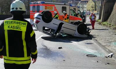 Im abschüssigen Bereich des Weinbergs kam er mit seinem Wagen nach links auf die Fahrbahnbegrenzung und verlor die Kontrolle über sein Auto. Der Pkw schleuderte über den rechten Fahrstreifen und stieß gegen den Felsen des Weinberges. Dort wurde das Fahrzeug aufgebockt, stürzte um und kam quer zur Fahrbahn auf dem Dach zum Liegen. Der 19-Jährige wurde von einem Rettungswagen in ein Kasseler Krankenhaus gebracht. Er konnte dieses nach ambulanter Behandlung bereits wieder verlassen. Die Frankfurter Straße war stadtauswärts nach dem Unfall wegen der Rettungs- und Bergungsarbeiten für etwa 30 Minuten voll gesperrt. Es kam im dortigen Bereich zu Verkehrsbehinderungen.Das Fahrzeug erlitt einen wirtschaftliche Totalschaden.