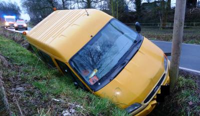 Unmittelbar vor dem Ortsbeginn von Bönstadt kam das Fahrzeug an der abschüssigen Strecke nach rechts von der Straße ab und fuhr in den Straßengraben. Zwei Schulkinder im Alter von sechs und sieben Jahren kamen offensichtlich mit dem Schrecken davon. Der Fahrer wurde in ein Krankenhaus eingeliefert. Nach bisherigen Ermittlungen besteht der Verdacht, dass der Fahrer zuvor gesundheitliche Probleme hatte und daher offensichtlich die Kontrolle über das Fahrzeug verlor. Die beiden Kinder wurden zur Vorsorge auch in ein Krankenhaus eingeliefert. Die Kreisstraße war für den Einsatz voll gesperrt.