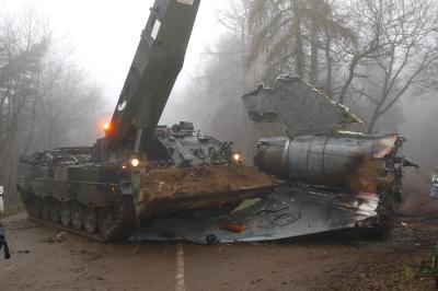 Koblenz (Rheinland-Pfalz) – Nach dem Absturz des Tornado-Kampfjets in der Eifel am vergangenen Donnerstagabend ist die Unfallstelle von Experten der Bundeswehr untersucht worden. Seit Montagvormittag werden die Trümmer von einem Bergepanzer 3 „Büffel“ geborgen und abtransportiert. Der endgültige Abschluss der Bergungsarbeiten lässt sich derzeit noch nicht vorhersehen.