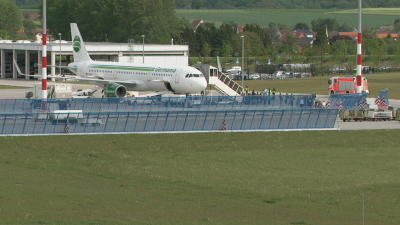 Nachdem alle Urlauber das Flugzeug verlassen hatten, standen auch schon die nächsten Fluggäste bereit um Ihren Urlaub anzutreten. Nachdem das Flugzeug betank und beladen war, setzte sich der Airbus mit rund 20 Minuten Verspätung wieder in Bewegung. Ohne noch einmal anzuhalten startet der Pilot das Flugzeug durch und hebt einen kurzen Augenblick später wieder ab in Richtung Süden. Viele Schaulustige verfolgten Start- und Landung vom Info Point aus, auch wenn das Wetter nicht gerade angenehm war.