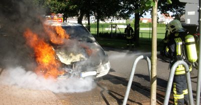Hess. Lichtenau – Am Freitagnachmittag um 17:28 Uhr wurde die Freiwillige Feuerwehr Hessisch Lichtenau zu einem (F1) PKW Brand alarmiert. Ein Kleinbus, geparkt in der Biegenstraße Ecke Heinrichstraße, fing durch bisher ungeklärte Ursache Feuer im Motorraum.