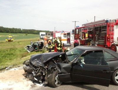 Zum gleichen Zeitpunkt wollte an der Einmündung zur L3070 ein Toyotafahrer (52) auf die Landstraße nach links in Richtung Windhausen abbiegen und übersah dabei den vorfahrtberechtigten Mercedes. Direkt im Einmündungsbereich kam es zu einem Zusammenstoß zwischen beiden Fahrzeugen. Durch die Wucht des Aufpralls wurde der Toyota über die Gegenfahrbahn in ein Feld geschleudert, wobei der Fahrer in seinem Fahrzeugwrack eingeklemmt und durch die Feuerwehr befreit werden musste. Der schwerverletzte Fahrer wurde mit dem Rettungshubschrauber in ein Marburger Krankenhaus geflogen. Der Mercedesfahrer erlitt leichtere Verletzungen und wurde mit dem Rettungswagen in ein Alsfelder Krankenhaus verbracht. Während der Rettungs- und Bergungsarbeiten musste die L3070 und der Einmündungsbereich voll gesperrt werden. An beiden Fahrzeugen entstand ein wirtschaftlicher Totalschaden, der von der Polizei mit ca. 20.000 Euro beziffert wird. Unmögliches Verhalten zeigte ein Verkehrsteilnehmer mit seiner Mofa an Rande des Geschehens. Er wollte mit seiner Mofa unbedingt durch die Unfallstelle fahren und beschwerte sich über die im Weg stehenden Feuerwehrfahrzeuge.