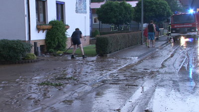 Mit enormer Wucht traf das Unwetter über Nordhessen herein. In Ippinghausen musste die Feuerwehr die Strassen vom Schlamm befreien und Keller leer pumpen. Gegen 20.20 Uhr gab es einen Großalarm in Wolfhagen, denn im Schwimmbad war zu allem Übel auch noch Chlorgas ausgetreten. Bademeister Sven Gulau erkannte die Situation sofort und handelte vorbildlich. Nach Auslösen des Alarms nahm er die für Notfälle bereit stehende Schutzmaske und drehte den Haupthahn der Anlage ab. Wie es zu dem Leck in der Anlage kommen konnte, steht derzeit noch nicht fest. Eine Fachfirma wird am Mittwoch die Anlage überprüfen. Bei dem Unfall wurde eine 23-jährige Frau leicht verletzt. Neben der Feuerwehr Wolfhagen, waren auch die Ortsteile Bründersen, Nothfelden und Niederelsungen mit rund 160 Einsatzkräfte im Einsatz. Auch die Feuerwehr Baunatal wurde zu dem Unfall gerufen, weil sie die entsprechenden Messgeräte zur Verfügung stellen konnte. Später kam auch das THW aus Wolfhagen zum Einsatz und half bei den Aufräumarbeiten.