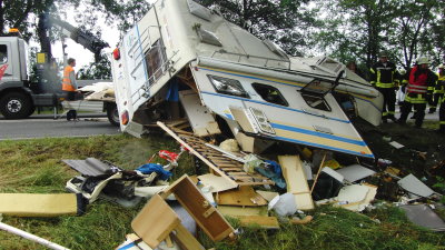 Die Rettungsaktion aus dem Fahrzeug gestaltete sich für die Kameraden der Feuerwehr besonders schwierig. Wohnmobile haben keine feste Karosserie wie z.B. ein PKW. Trotz der massiven Verformung wurde der Fahrer zwar schwer verletzt, doch Lebensgefahr besteht offensichtlich nicht. Nachdem der Mann aus dem Wrack befreit war, wurde er nach einer Erstversorgung an der Unfallstelle mit dem Rettungshubschrauber Christoph 28 in ein nahe gelegenes Krankenhaus geflogen. Ein weiteres Problem bestand für die zur Einsatzstelle gerufene Feuerwehr, dass nicht eindeutig geklärt werden konnte, ob sich noch weitere Personen im Fahrzeug befanden. Nachdem die Feuerwehr mit viel Aufwand das Wohnmobil untersucht hatte, stand fest, dass sich der Mann alleine im Fahrzeug befand. Für das zur Einsatzstelle gerufene Abschleppunternehmen wurde es dann kompliziert. Auf Grund der Zerstörung zerfiel das Wohnmobil buchstäblich in seine Einzelteile, als das Bergungsunternehmen seine Arbeiten aufnehmen wollte. Ein Abtransport was so nicht mehr möglich. Das völlig zerstörte Fahrzeug musste in einen Container verladen werden und wurde damit abtransportiert. Während der Rettungs- und Aufräumungsarbeiten musste die B254 voll gesperrt werden. Zum Einsatz kam die Feuerwehr Frielendorf, Obergrenzebach und Spießkappel mit insgesamt 33 Einsatzkräften. Über die Höhe des Sachschadens wird von der Polizei auf rund 4000.- Euro geschätzt.