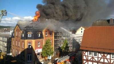 Bebra – Gegen 18.25 Uhr kann es zu einem Wohnhausbrand in Bebra. Die Flammen schlugen aus dem unbewohntem mehrstöckigen Haus meterhoch aus dem Dachstuhl. Bei dem Haus handelt es sich um ein historisches Ziegelsteinhaus welches unter Denkmalschutz steht. Es ist den Einheimischen unter „Semm’s Ecke“ bekannt.