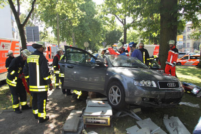 Frankfurt – Zu einem Verkehrsunfall mit eingeklemmter Person wurde am Mittwoch um kurz nach 10 Uhr die Feuerwehr Frankfurt in die Nibelungenallee gerufen. In Höhe der Kreuzung zur Richard-Wagner-Straße kam aus bislang ungeklärter Ursache ein Fahrzeug von der Fahrbahn ab, landete im Grünstreifen und kam auf einem Steuerkasten einer Ampelanlage zum stehen.