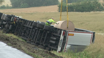 Der Fahrer wurde in seinem Fahrzeug eingeschlossen und konnte selbst nicht befreien. Sein Bruder der sich auch an der Einsatzstelle befand, konnte ihm dann aus den Fahrerhaus helfen. Mit leichten Verletzungen wurde er in ein Krankenhaus eingeliefert. Der LKW hatte Papierrollen geladen, die sehr aufwendig mit einem Kran geborgen werden mussten. Insgesamt befanden sich neun Rollen auf dem Auflieger, wobei jede rund 2,7 Tonnen wog. Auf Grund der Bergungsmaßnahmen musste eine der beiden Spuren Richtung Kassel gesperrt werden, was einen rund 11 Kilometer langen Stau verursachte. Gegen 11.30 Uhr war der LKW entladen und konnte auf die Strasse gehoben werden. Der Bruder des Unglücksfahrers holte dann die Papierrollen mit einem weiteren LKW ab. Die Papierrollen haben bei dem Unfall einen Totalschaden erlitten und müssen entsorgt werden. Wie hoch sich der Sachschaden am LKW beläuft stand derzeit noch nicht fest.
