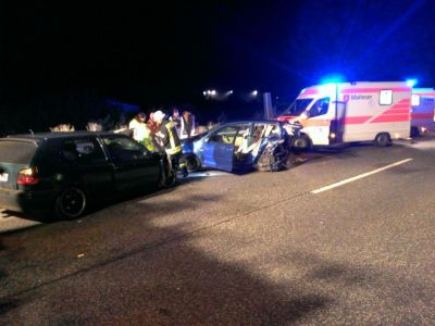 Vermutlich schätzte ein 26-jähriger Mann aus Borken die Geschwindigkeit zum Vordermann falsch ein und krachte in das vor ihm fahrende Fahrzeug. Bei dem Aufprall blieb der Mann unverletzt jedoch seine 22-Jährige schwangere Beifahrerin, sowie die beiden Insassen des vorausfahrenden Pkws wurden schwer, aber nicht lebensbedrohlich verletzt. Neben der Feuerwehr Baunatal waren auch drei Rettungswagen sowie zwei Notärzte im Einsatz. Die Autobahn war für rund 45 Minuten voll gesperrt, der Sachschaden wird auf rund 18.000 Euro geschätzt.