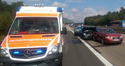 Im weiteren Verlauf fuhren dann auch noch ein Audi, ein Mercedes und ein Peugeot in die beiden Fahrzeuge hinein. Bei dem Unfall wurden zwei Personen so schwer verletzt, dass sie mit dem Rettungswagen in ein Krankenhaus gefahren werden mussten. An mindestens zwei Fahrzeugen entstand wirtschaftlicher Totalschaden. Während der Rettungs- und Bergungsarbeiten musste der rechte von zwei Fahrstreifen gesperrt werden. Der Verkehr staute sich auf der A7 bis weit über das Kirchheimer Dreieck hinaus auf mehrere Kilometer. Auch auf der A4, die in Kirchheim auf die A7 führt, staute sich der Verkehr über mehrere Kilometer. Das Kirchheimer Dreieck ist am Sonntagnachmittag ohnehin ein Verkehrsengpass, da von der A4 aus Richtung Osten der Pendlerverkehr über die A7 auf die A5 in Richtung Westen unterwegs ist. Durch den Unfall kamen noch erhebliche Behinderungen hinzu. Gegen 15.30 Uhr konnten beide Fahrstreifen wieder frei gegeben werden. Eine Entspannung ist jedoch erst in den Abendstunden zu erwarten.