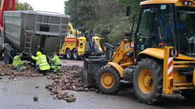 Vellmar – Am Dienstagmorgen kam es auf der L3234 bei Vellmar zu einem LKW-Unfall. Nach den bisherigen Erkenntnissen der Polizei und den Angaben eines Unfallzeugen zufolge war der mit 24 Tonnen Rüben beladene Sattelzug gegen 6:45 Uhr auf der L 3234 aus Richtung Ihringshausen kommend in Richtung Vellmar unterwegs.