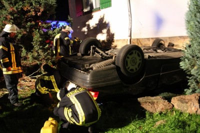 Sie verlor die Kontrolle über ihr Fahrzeug und prallte gegen eine Gartenmauer, dann blieb das Auto auf dem Dach im Vorgarten liegen. Die Frau wurde in die Asklepios-Klinik nach Melsungen gebracht. An dem Wagen entstand Totalschaden. Die Freiwillige Feuerwehr Melsungen war unter der Leitung von Stadtbrandinspektor Frank Ebert mit 12 Einsatzkräften an der Unfallstelle.