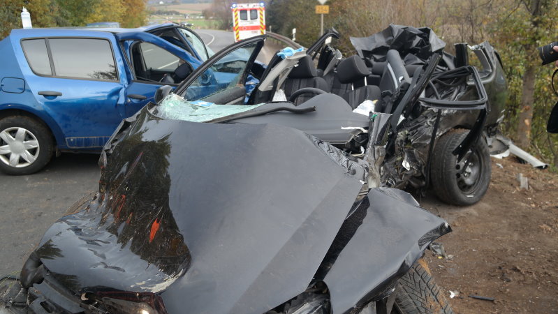Der Aufprall war so heftig, dass das Fahrzeug durch die Leitblanke gedrückt und eine Böschung hinunter geschoben wurde. Die sofort zu Einsatzstelle gerufene Feuerwehr hatte große Probleme an die im Fahrzeug eingeklemmte Person heran zu kommen. Trotz aller Bemühungen von Feuerwehr und Notarzt, verstarb der Mann noch a der Unfallstelle. Die junge Frau wurde bei dem Unfall schwer verletzt und musste nach einer Erstversorgung an der Einsatzstelle mit dem Rettungshubschrauber in ein Krankenhaus geflogen werden. Um die genaue Unfallursache klären zu können, wurde von der Staatsanwaltschaft ein Gutachter zu Unfallstelle bestellt. Nach ersten Erkenntnissen der Polizei wird der Sachschaden auf rund 35.000 Euro geschätzt. Zum Einsatz kam die Feuerwehr Homberg mit insgesamt 22 Einsatzkräften. Die B254 war auf Grund der Rettungs- und Bergungsarbeiten voll gesperrt.