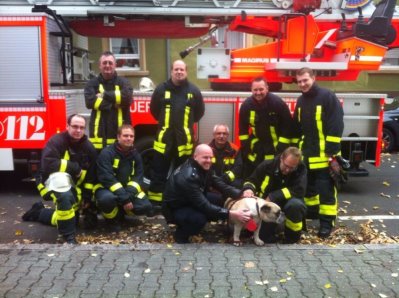 Da nicht ausgeschlossen werden konnte, dass der Hund von dem Dach stürzt, alarmierte die Nachbarin um 09.15 Uhr die Feuerwehr. Der zahme Hund konnte über die Drehleiter der Berufsfeuerwehr vom Dach gerettet werden. Da die Besitzer des Hundes nicht zu Hause waren, wurde das Tier wohlbehalten in die Obhut der Polizei übergeben.