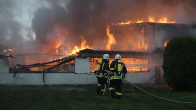 Sachsenhausen – eine hunderte Meter hohe Rauchsäule zeigt dass in dem kleinen Ort Sachsenhausen ein Feuer wütet. Rund 120 Feuerwehrleute sind im Einsatz die Flammen unter Kontrolle zu bringen. Drei Drehleitern waren im Einsatz.