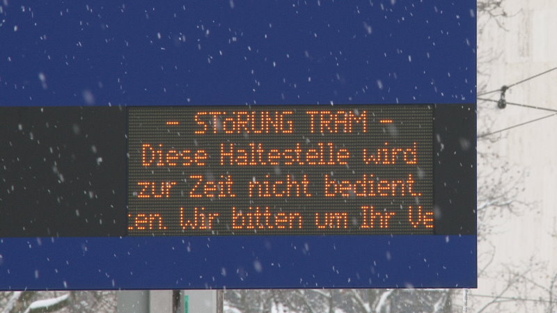 Über kurzfristige Änderungen bei Bussen und Bahnen informiert die KVG über die elektronischen Fahrplananzeiger.