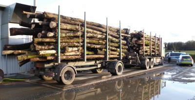 Auf einer Waage bestätigte sich dann der Verdacht, der LKW war um fast 24 % Buchenholz überladen und wog fast 50 Tonnen. Daraufhin leiteten die Beamten ein Gewinnabschöpfungsverfahren ein. In solch einem Verfahren kann der entstandene Gewinn des Unternehmers entsprechend abgeschöpft bzw. für verfallen erklärt werden, in diesem Falle bis zu 1000 Euro. Bevor er seine Fahrt weiter fortsetzen konnte, musste der LKW-Fahrer etwa ein Drittel seiner Ladung abladen und einen weiteren LKW zum Abtransport ordern. Michael Chirakakis vom Regionalen Verkehrsdienst: „Überladungen mit Buchenholz sind kein Einzelfall und werden immer wieder festgestellt. Deshalb müssen voll beladene LKW auch mit Kontrollen rechnen“.