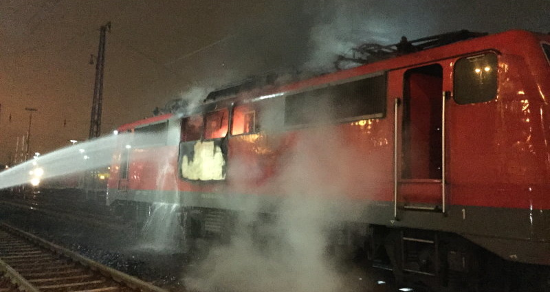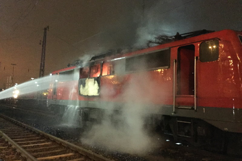 Frankfurt – Gegen 3 Uhr wurde der Feuerwehr in der Nacht auf Mittwoch der Brand einer Elektrolokomotive eines Reisezuges auf einem Abstellgleis im Bereich Hermann-Eggert-Straße Höhe Camberger Brücke, gemeldet.
