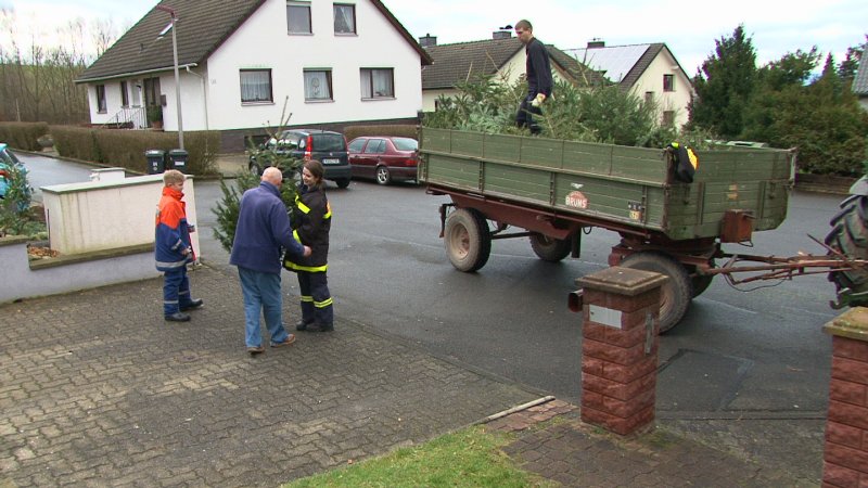 Doch wohin mit dem Baum? Es gibt sicher viele Methoden ihn zu entsorgen. Fabian Störmer vom Feuerwehrverein Niederkaufungen ist einer der Initiatoren die sich jährlich um Abtransport und die Entsorgung der Weihnachtbäume kümmert.  Mit rund 60 freiwilligen Helfern aus verschiedenen ortsnahen Vereinen fuhren sie durch die Ortschaften Kaufungen, Niederkaufungen und Papierfabrik und holen Ihre weihnachtliche Fracht bei den Hausbewohnern ab. In der Regel gibt es kleine Spenden die später der Jugendfeuerwehr für die Jugendarbeit zu Gute kommt. Am Samstagmorgen um 8.30 Uhr war Treff im Stützpunkt der Feuerwehr in Kaufungen. Mehrere Landwirte haben Ihre Schlepper für die Aktion zur Verfügung gestellt.   Diese Aktion kommt nicht nur gut bei den Anwohnern an, sondern lockt leider auch diverse Nachmacher mit krimineller Neigung auf den Plan. So tauchten in der Vergangenheit schon falsche Jugendfeuerwehrleute auf und sprachen die Anwohner auf Spenden an. In einem Fall hatte ein Schrotthändler Wind von der Aktion bekommen und sammelte die Spenden gutmütiger Menschen die sie vorher an dem Baum angebracht hatten ein.  Normalerweise werden die Bäume nach der Sammelaktion zu einem Platz transportiert, um diese später im Rahmen eines kleinen Festes zu verbrennen. Hier gibt es dann Wurst vom Grill und Glühwein. Zwischen 400 und 500 Leute kamen sonst jedes Jahr zu dieser Veranstaltung. Diesmal allerdings werden die Bäume nur in der Kompostierungsanlage Frommershausen entsorgt. Grund ist der starke Wind, denn es wäre zu gefährlich jetzt ein Feuer zu entzünden. Die Initiatoren bedanken sich auch dieses Jahr wieder für die zahlreichen Spenden.