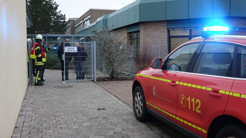 Nach kurzer Zeit waren rund 30 Einsatzkräfte der Feuerwehr Hofheim, Feuerwehr Marxheim, Feuerwehr Eschborn und Feuerwehr Bad Soden sowie drei Rettungswagen, ein Notarzt und die Polizei mit mehreren Funkstreifenwagen vor Ort. Es wurde ein Wert von 0,05 pph gemessen. Das Gebäude wurde gelüftet. Der Hausmeister wurde verletzt und in ein Krankenhaus eingeliefert. Der Einsatz war nach rund 90 Minuten beendet, die Ursache ist unbekannt und wird ermittelt.