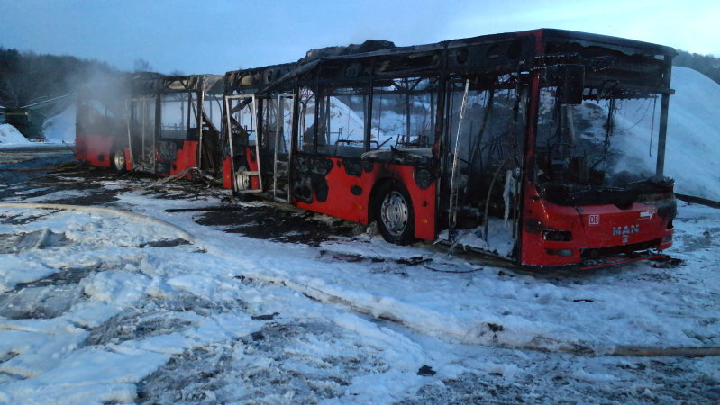 Der Fahrer hatte den Motor des Gelenkbusses gestartet und stellte fest, dass es im Bereich des Motors zu einer Flammenbildung kam. Die sofort zur Einsatzstelle gerufene Feuerwehr fand den Bus bereits im Vollbrand vor. Mit zwei C-Rohren und dem Einsatz von Schaummittel konnte das Fahrzeug nach rund 20 Minuten komplett gelöscht werden. Nach ersten Erkenntnissen könnte eine defekte Standheizung für den Brand verantwortlich sein. Zum Einsatz kam die Feuerwehr Schauenburg mit rund 40 Einsatzkräften. Bei dem Brand wurde zum Glück niemand verletzt. Über die Schadenshöhe konnten noch keine Angaben gemacht werden.