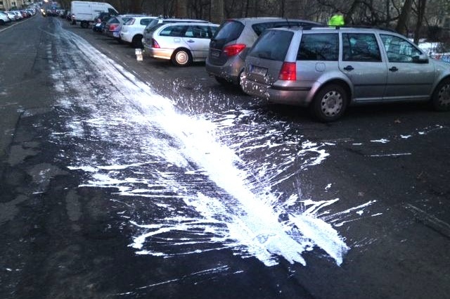 In Folge des Aufpralls ergoss sich der Inhalt aus dem beschädigten Eimer auf die Fahrbahn. Eine Vielzahl von Autos war durch die Farblache gefahren und hat dabei die dort parkenden Pkw bespritzt. Offenbar hielten die Autofahrer die Farbpfütze für Reste von Schnee und umfuhren sie daher nicht. Wann der Farbeimer auf die Straße kippte ist bislang nicht eindeutig geklärt, die Polizei wurde am Donnerstag gegen kurz nach 17 Uhr über die Verunreinigung informiert worden. Die Farbe, die zuvor an mindestens drei am Straßenrand abgestellte Fahrzeuge spritzte, konnte von den Besitzern so weit entfernt werden, dass kein Sachschaden entstanden war. Ob Fahrzeuge beschädigt sind, die direkt durch die Lache fuhren, ist bislang nicht bekannt. Daher konnte die genaue Höhe, des möglicherweise entstandenen Sachschadens, noch nicht beziffert werden. Kosten verursachten bislang in jedem Fall die Beseitigung der weißen Farbe. Die Ermittler der Unfallfluchtgruppe suchen nun nach dem Verlierer des Eimers, möglicherweise eine Malerfirma, der das Material früher als geplant ausging. Auch betroffene Autofahrer, denen ein Schaden entstanden ist, sollten sich unter 0561 – 9100 bei der Kasseler Polizei melden.