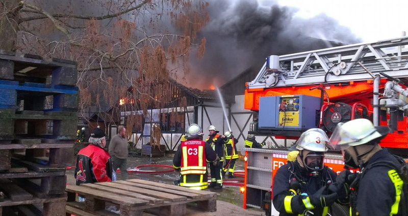 Frankfurt – Am Mittwochabend wurde gegen 17.40 Uhr die Feuerwehr zu einem Brand auf einem landwirtschaftlichen Anwesen in Unterliederbach alarmiert. Auf dem dortigen „Elisabethenhof“ brannte bei Eintreffen der Feuerwehr eine rund 40 Quadratmeter großer Anbau, welcher als Aufenthaltsbereich für Personal und als Waschküche genutzt wurde, in voller Ausdehnung.