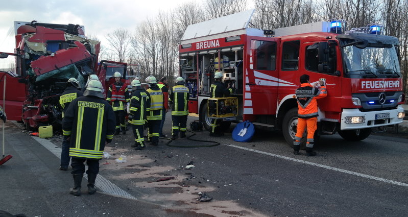 Ein 57-jähriger Mann aus Nordsachsen erkannte offensichtlich die Situation zu spät und krachte nahezu ungebremst in das vor Ihm befindliche Fahrzeug. Durch die Wucht des Aufpralls wurde der Mann in seinem Fahrzeug eingeklemmt und musste von der Feuerwehr Breuna mit schwerem Gerät befreit werden. Die Verletzungen des Mannes waren jedoch so schwer, dass er noch an der Unfallstelle verstarb. Der Fahrer des tschechischen Fahrzeuges wurde bei dem Unfall leicht verletzt. Wieder einmal hatte die Feuerwehr auf der Anfahrt massive Probleme an die Unfallstelle zu gelangen. Es wurde keine Rettungsgasse von den Verkehrsteilnehmern gebildet. Sobald sich ein Fahrzeug der Feuerwehr durch den Verkehr gekämpft hatte, wurde die Rettungsgasse sofort wieder zugestellt, sodass nachfolgende Einsatzfahrzeuge wieder behindert wurden. Auf Grund der Vollsperrung staute sich der Verkehr bis auf eine Länge von 15 Kilometern. Zum Einsatz kam die Feuerwehr Breuna, sowie die Feuerwehr Wolfhagen mit insgesamt 28 Einsatzkräften. Neben zwei Rettungswagen war auch der Rettungshubschrauber Christoph 7 im Einsatz. Über die Schadenshöhe konnte die Polizei noch keine Angaben machen.
