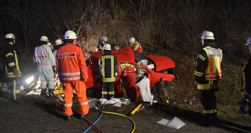 Die technische Rettung gestaltete sich sehr aufwendig und schwierig aufgrund der Lage und der Verformung des Fahrzeugs. Die 31-jährige Fahrerin, deren Wagen zuerst touchiert wurde, kam mit dem Schrecken davon. Ein 30-jähriger fuhr mit seinem Fahrzeug im Anschluss noch über Trümmerteile und beschädigte sein Fahrzeug leicht Bei dem Unfall gab es insgesamt fünf Verletzte, davon zwei schwer, zwei mittel und einer leicht verletzt. Neben der Feuerwehr waren fünf Rettungswagen und zwei Notarzteinsatzfahrzeuge mit zwei Notärzten und die Autobahnpolizei an der Einsatzstelle. Die Feuerwehr sicherte die Einsatzstelle ab, betreute verletzte Personen und übernahm die technische Rettung der eingeklemmten Person. Beim Unfallverursacher wurde durch die Staatsanwaltschaft Kassel eine Blutentnahme angeordnet, der Führerschein und der PKW wurden sichergestellt. Ein Gutachter wurde hinzugezogen. Nach rund zwei Stunden war der Einsatz für die 30 Helfer der Freiwillige Feuerwehr Baunatal beendet.